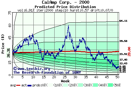 The following graph plots the year-to-date performance of the stock for 2000 compared to the probability calculated by a random walk model.
