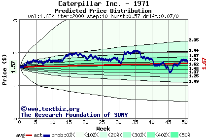 The following graph plots the year-to-date performance of the stock for 1971 compared to the probability calculated by a random walk model.