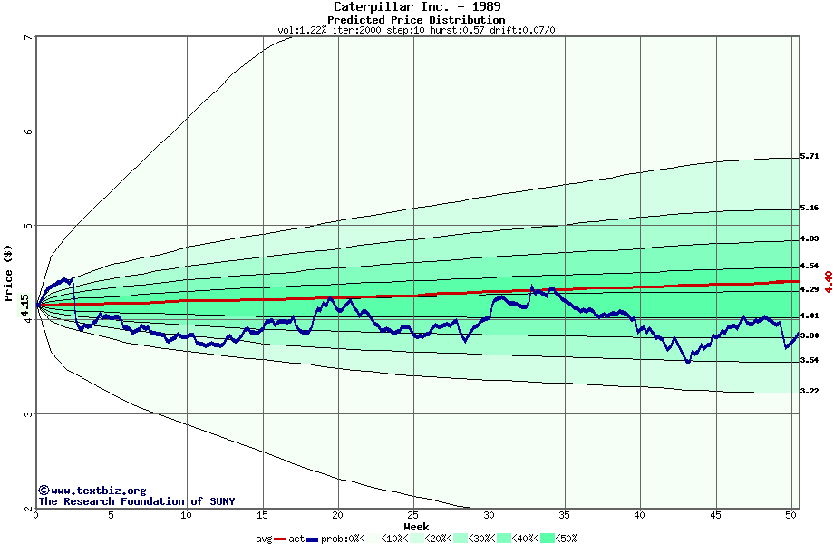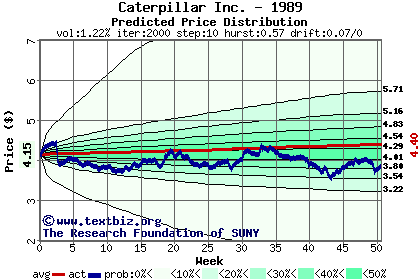 The following graph plots the year-to-date performance of the stock for 1989 compared to the probability calculated by a random walk model.