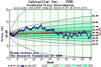 The following graph plots the year-to-date performance of the stock for 1998 compared to the probability calculated by a random walk model.