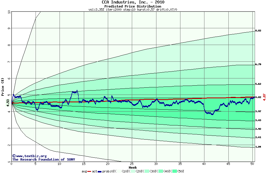 The following graph plots the year-to-date performance of the stock for 2010 compared to the probability calculated by a random walk model.