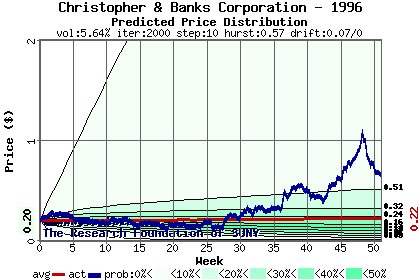 The following graph plots the year-to-date performance of the stock for 1996 compared to the probability calculated by a random walk model.