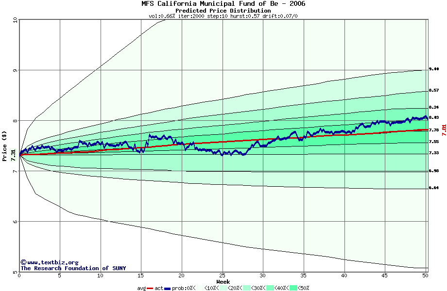 The following graph plots the year-to-date performance of the stock for 2006 compared to the probability calculated by a random walk model.