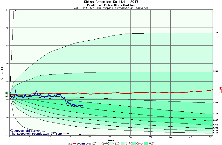 The following graph plots the year-to-date performance of the stock for 2017 compared to the probability calculated by a random walk model.