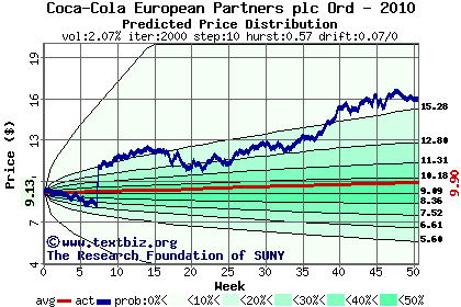 The following graph plots the year-to-date performance of the stock for 2010 compared to the probability calculated by a random walk model.