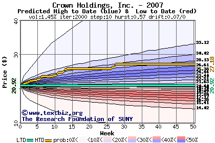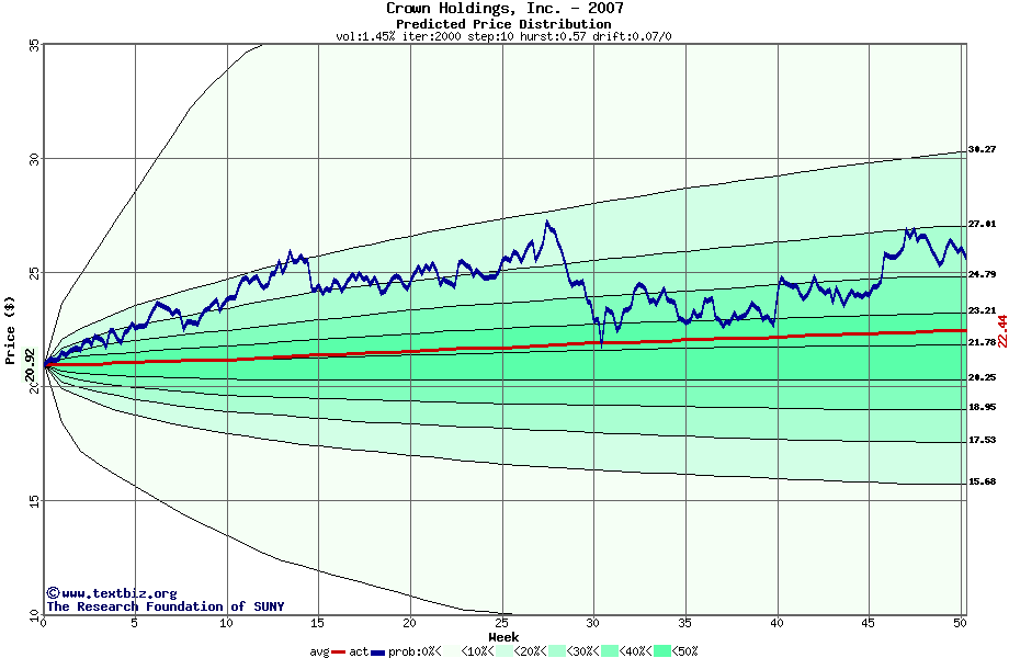 The following graph plots the year-to-date performance of the stock for 2007 compared to the probability calculated by a random walk model.