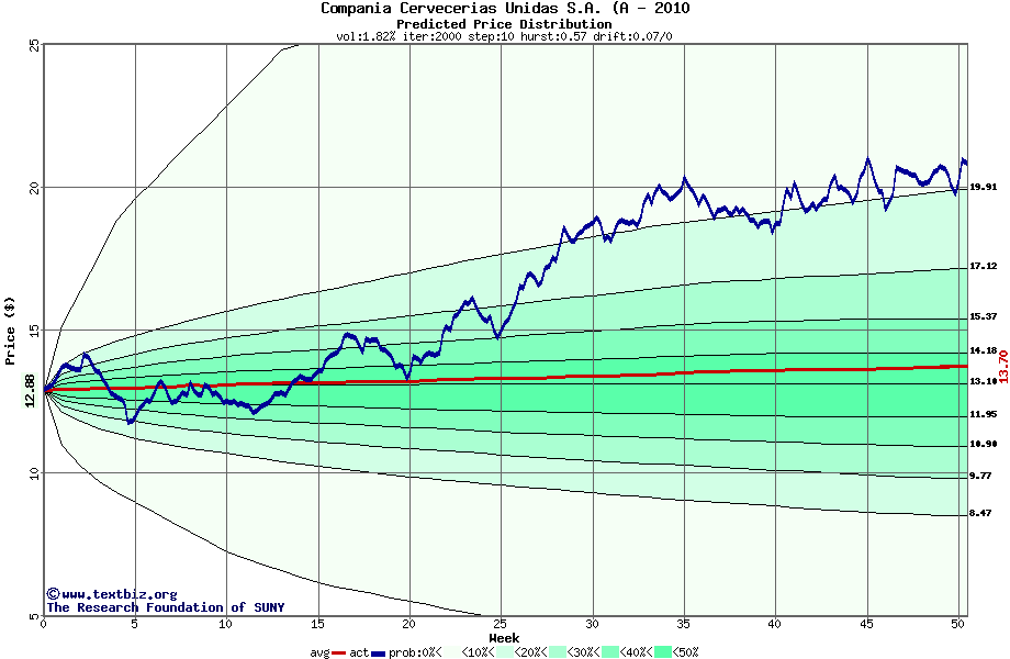 The following graph plots the year-to-date performance of the stock for 2010 compared to the probability calculated by a random walk model.