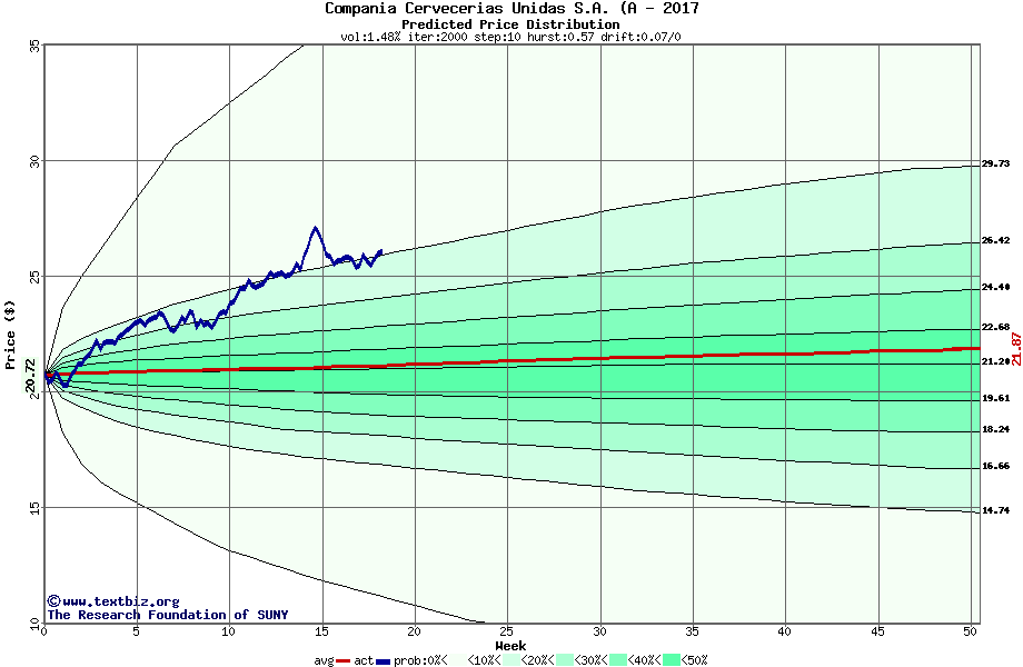 The following graph plots the year-to-date performance of the stock for 2017 compared to the probability calculated by a random walk model.