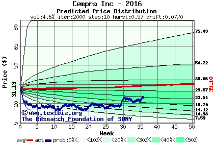 The following graph plots the year-to-date performance of the stock for 2016 compared to the probability calculated by a random walk model.