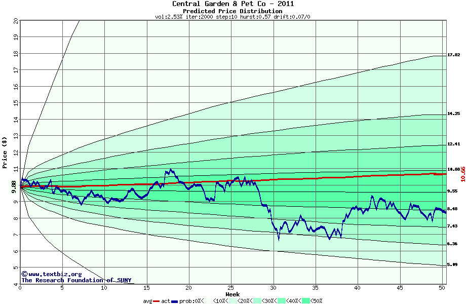 The following graph plots the year-to-date performance of the stock for 2011 compared to the probability calculated by a random walk model.