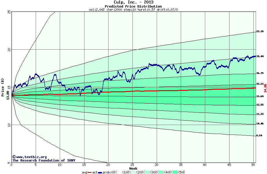 The following graph plots the year-to-date performance of the stock for 2013 compared to the probability calculated by a random walk model.