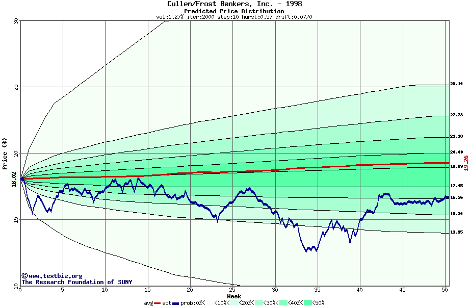 The following graph plots the year-to-date performance of the stock for 1998 compared to the probability calculated by a random walk model.
