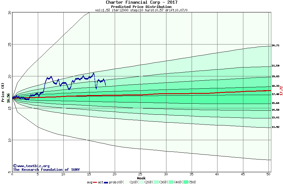 The following graph plots the year-to-date performance of the stock for 2017 compared to the probability calculated by a random walk model.