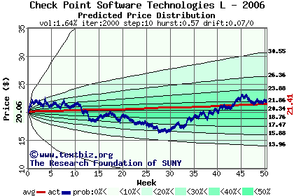 The following graph plots the year-to-date performance of the stock for 2006 compared to the probability calculated by a random walk model.