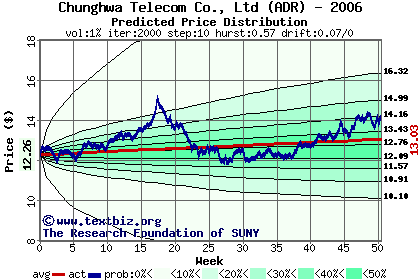 The following graph plots the year-to-date performance of the stock for 2006 compared to the probability calculated by a random walk model.