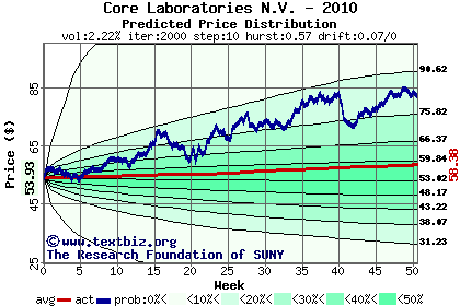 The following graph plots the year-to-date performance of the stock for 2010 compared to the probability calculated by a random walk model.