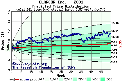 The following graph plots the year-to-date performance of the stock for 2001 compared to the probability calculated by a random walk model.