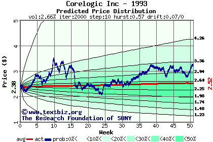 The following graph plots the year-to-date performance of the stock for 1993 compared to the probability calculated by a random walk model.