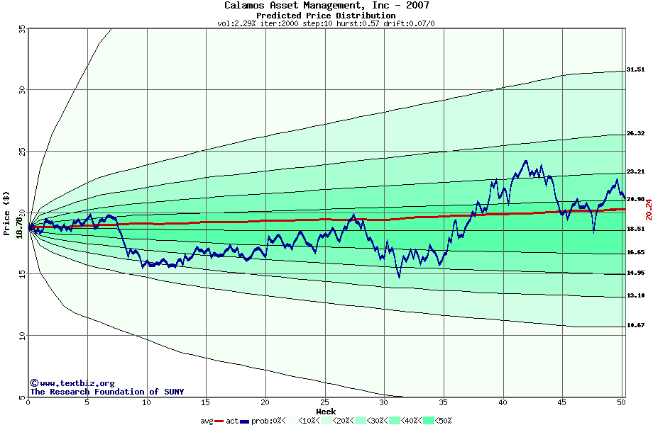 The following graph plots the year-to-date performance of the stock for 2007 compared to the probability calculated by a random walk model.