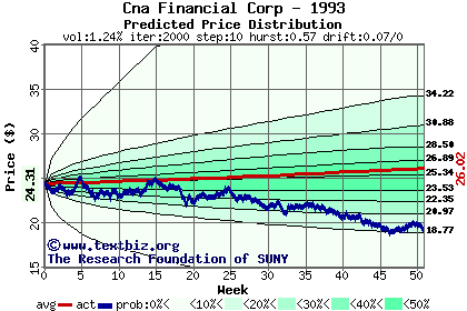 The following graph plots the year-to-date performance of the stock for 1993 compared to the probability calculated by a random walk model.