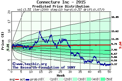 The following graph plots the year-to-date performance of the stock for 2015 compared to the probability calculated by a random walk model.