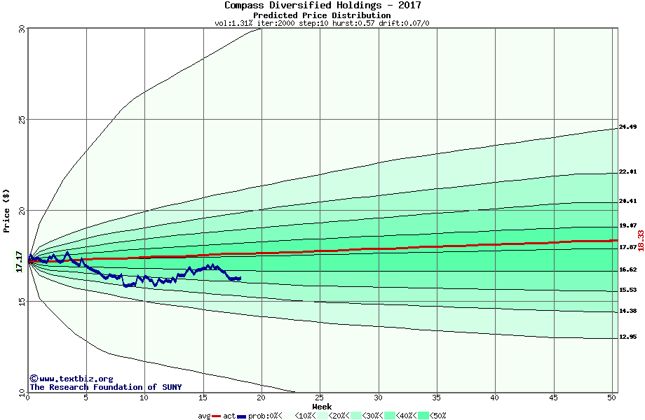 The following graph plots the year-to-date performance of the stock for 2017 compared to the probability calculated by a random walk model.