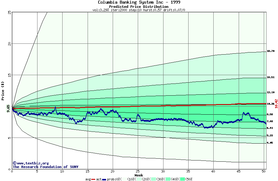 The following graph plots the year-to-date performance of the stock for 1999 compared to the probability calculated by a random walk model.