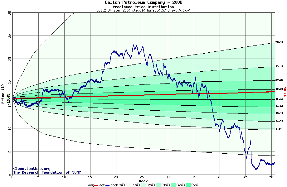 The following graph plots the year-to-date performance of the stock for 2008 compared to the probability calculated by a random walk model.