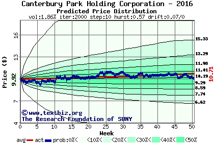The following graph plots the year-to-date performance of the stock for 2016 compared to the probability calculated by a random walk model.