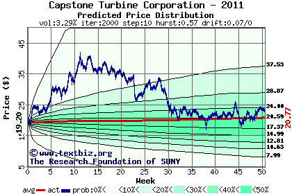 The following graph plots the year-to-date performance of the stock for 2011 compared to the probability calculated by a random walk model.