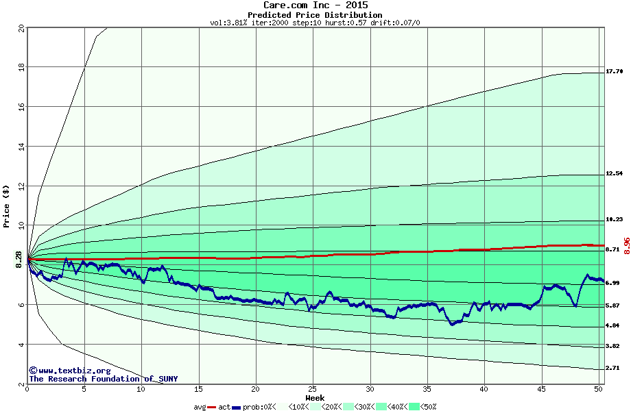 The following graph plots the year-to-date performance of the stock for 2015 compared to the probability calculated by a random walk model.