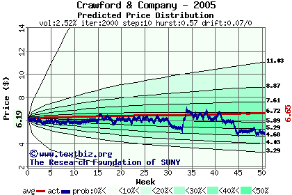 The following graph plots the year-to-date performance of the stock for 2005 compared to the probability calculated by a random walk model.