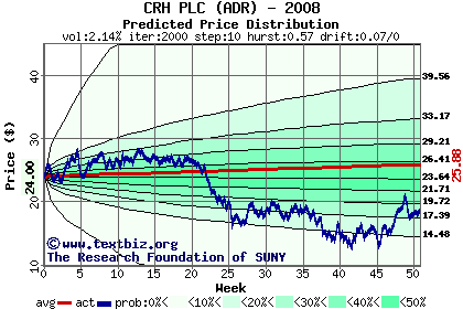The following graph plots the year-to-date performance of the stock for 2008 compared to the probability calculated by a random walk model.