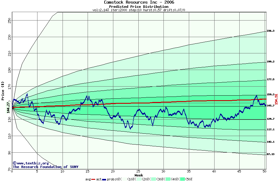 The following graph plots the year-to-date performance of the stock for 2006 compared to the probability calculated by a random walk model.