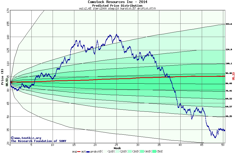 The following graph plots the year-to-date performance of the stock for 2014 compared to the probability calculated by a random walk model.