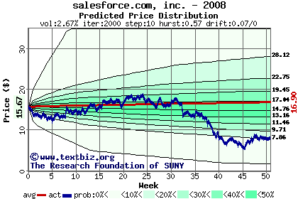 The following graph plots the year-to-date performance of the stock for 2008 compared to the probability calculated by a random walk model.