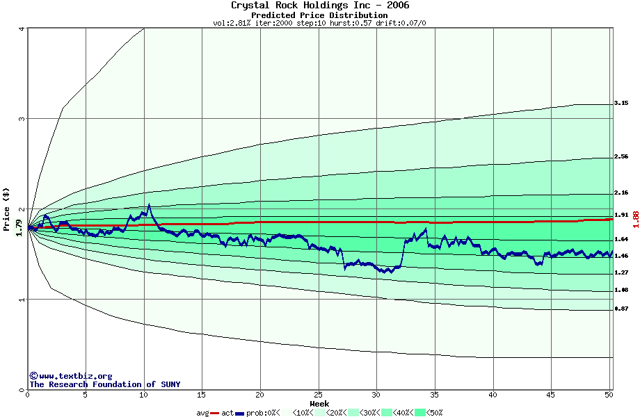 The following graph plots the year-to-date performance of the stock for 2006 compared to the probability calculated by a random walk model.
