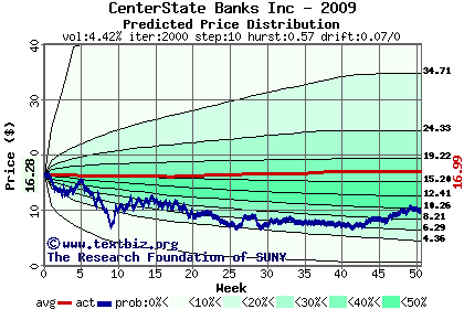 The following graph plots the year-to-date performance of the stock for 2009 compared to the probability calculated by a random walk model.