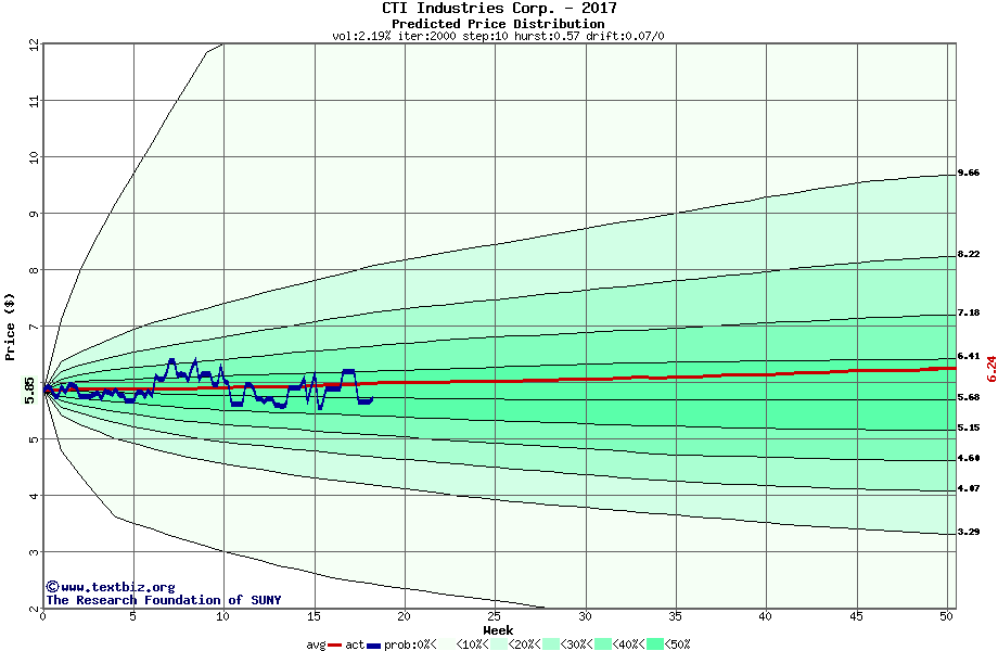 The following graph plots the year-to-date performance of the stock for 2017 compared to the probability calculated by a random walk model.