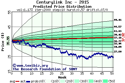 The following graph plots the year-to-date performance of the stock for 2015 compared to the probability calculated by a random walk model.