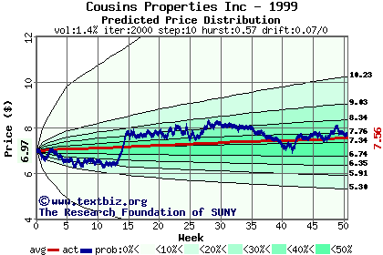 The following graph plots the year-to-date performance of the stock for 1999 compared to the probability calculated by a random walk model.