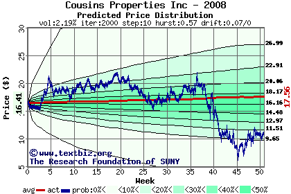The following graph plots the year-to-date performance of the stock for 2008 compared to the probability calculated by a random walk model.