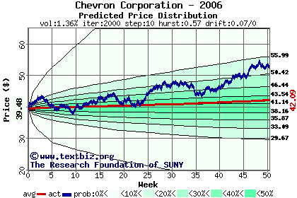 The following graph plots the year-to-date performance of the stock for 2006 compared to the probability calculated by a random walk model.
