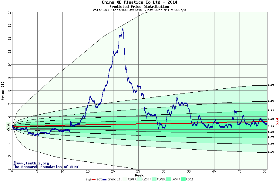 The following graph plots the year-to-date performance of the stock for 2014 compared to the probability calculated by a random walk model.