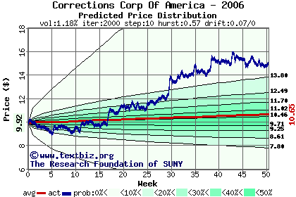 The following graph plots the year-to-date performance of the stock for 2006 compared to the probability calculated by a random walk model.