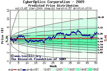 The following graph plots the year-to-date performance of the stock for 2009 compared to the probability calculated by a random walk model.