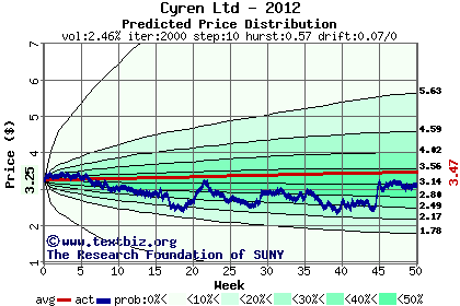 The following graph plots the year-to-date performance of the stock for 2012 compared to the probability calculated by a random walk model.
