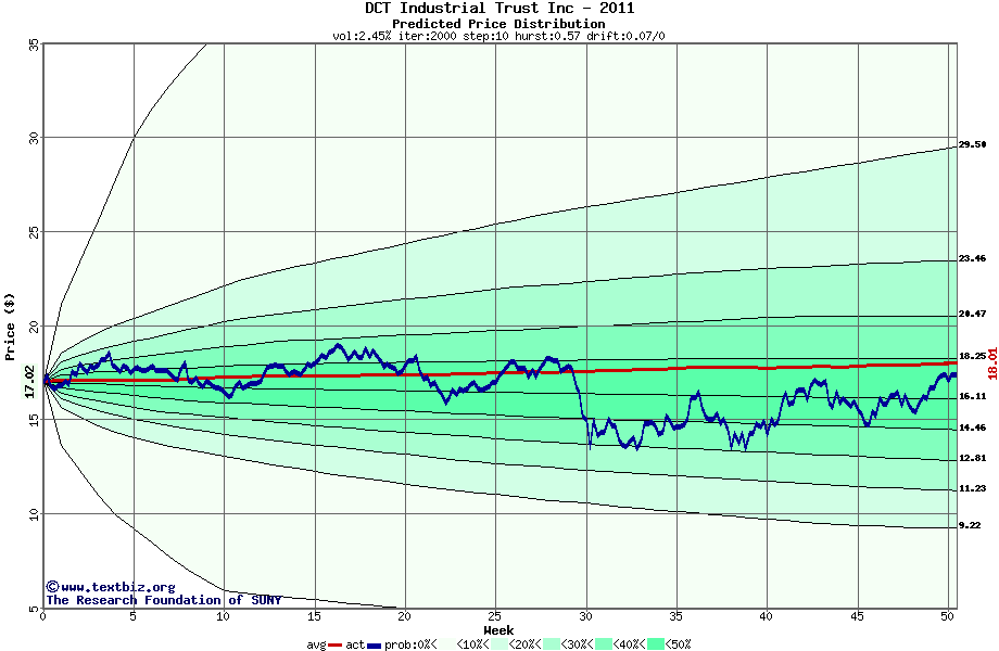 The following graph plots the year-to-date performance of the stock for 2011 compared to the probability calculated by a random walk model.