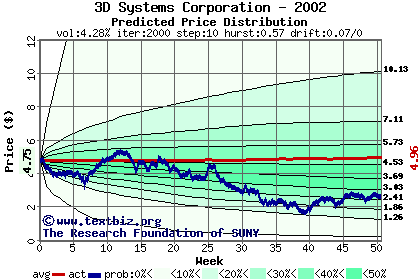 The following graph plots the year-to-date performance of the stock for 2002 compared to the probability calculated by a random walk model.