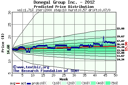 The high to date and low to date prices of the stock plotted against a random walk model for 2012 (what's this?).